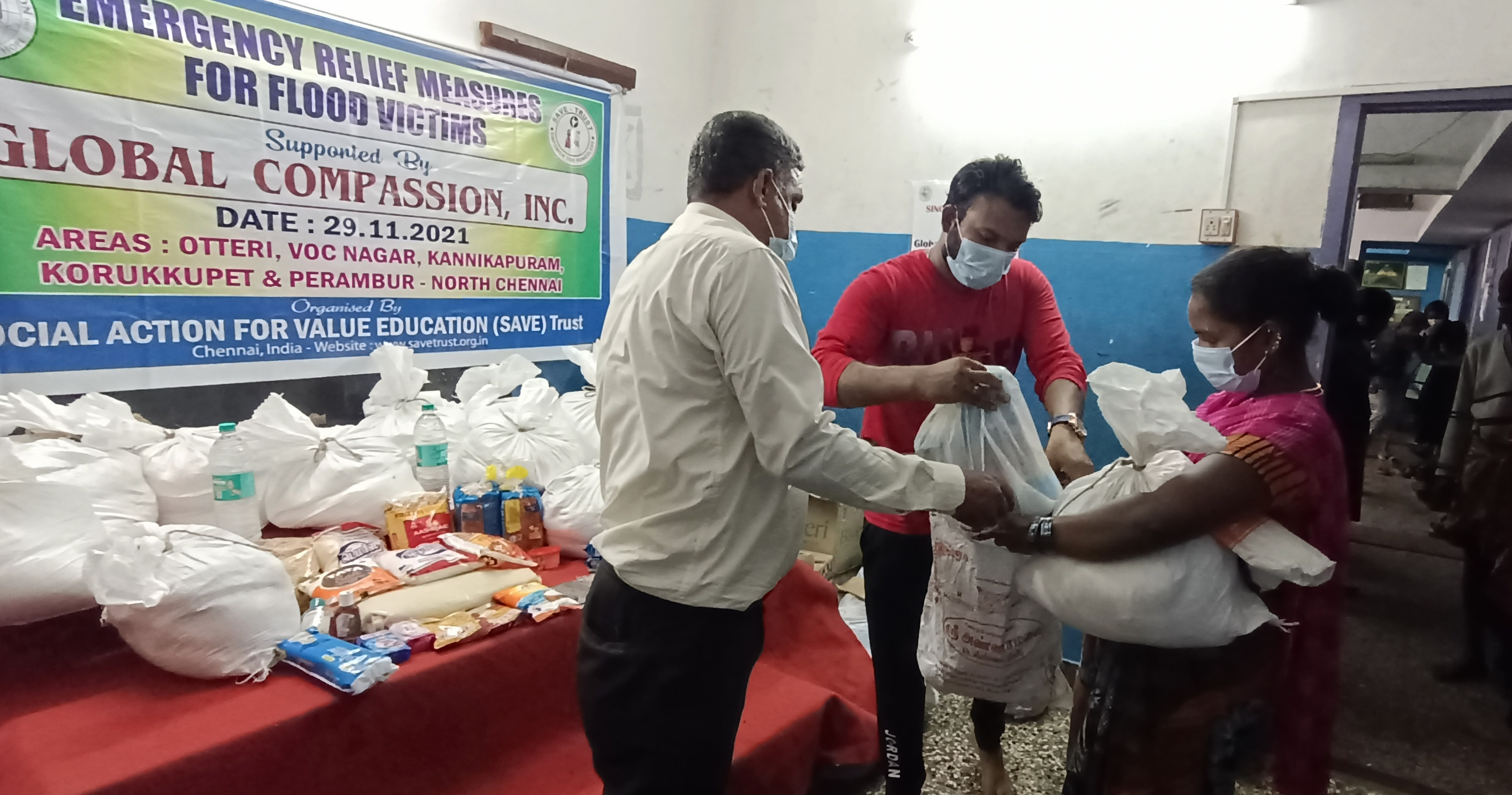 During the heavy floods in November 2021, SAVE Trust provided emergency relief to 212 families in Chennai slums, including HIV-positive individuals and sanitation workers. Kits included food and hygiene essentials. In 2024, Global Compassion also funded educational supplies for 120 children affected by monsoon-related disruptions. Their continued support has provided much-needed relief during natural disasters.