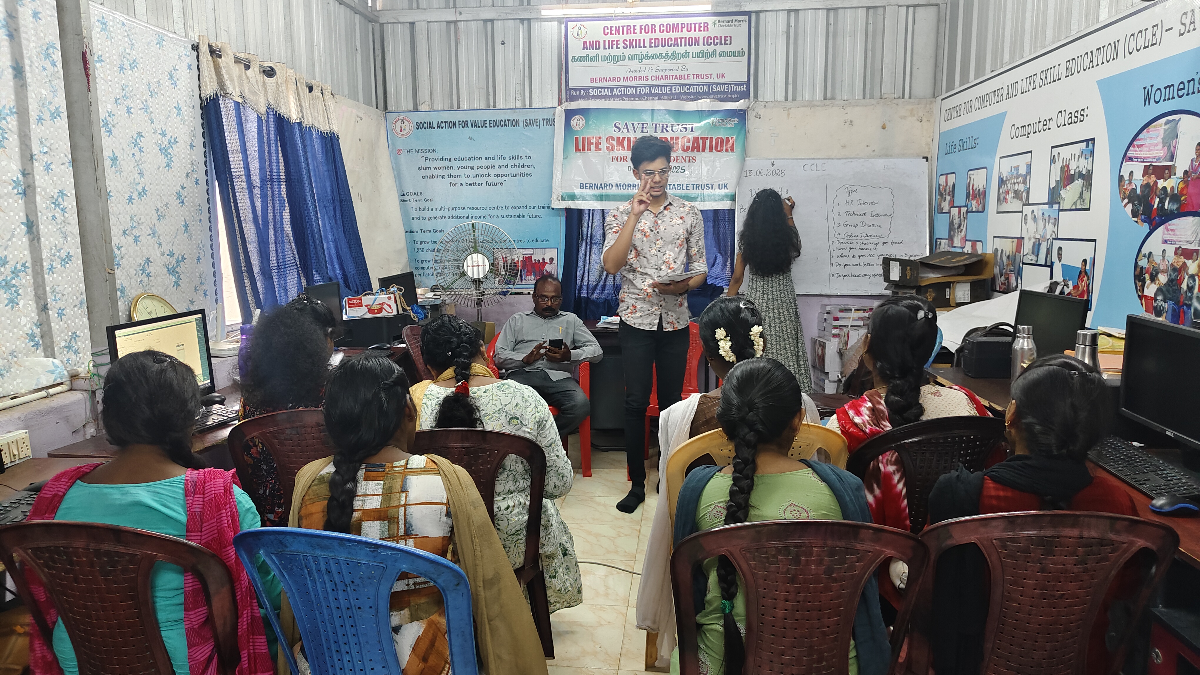 SAVE Trust offers structured internships to students from institutions like MSSW, Loyola, Stella Maris, and SRM University. Interns are placed in slum communities across Chennai and gain hands-on experience in tuition centres, surveys, casework, career counselling, and community events.